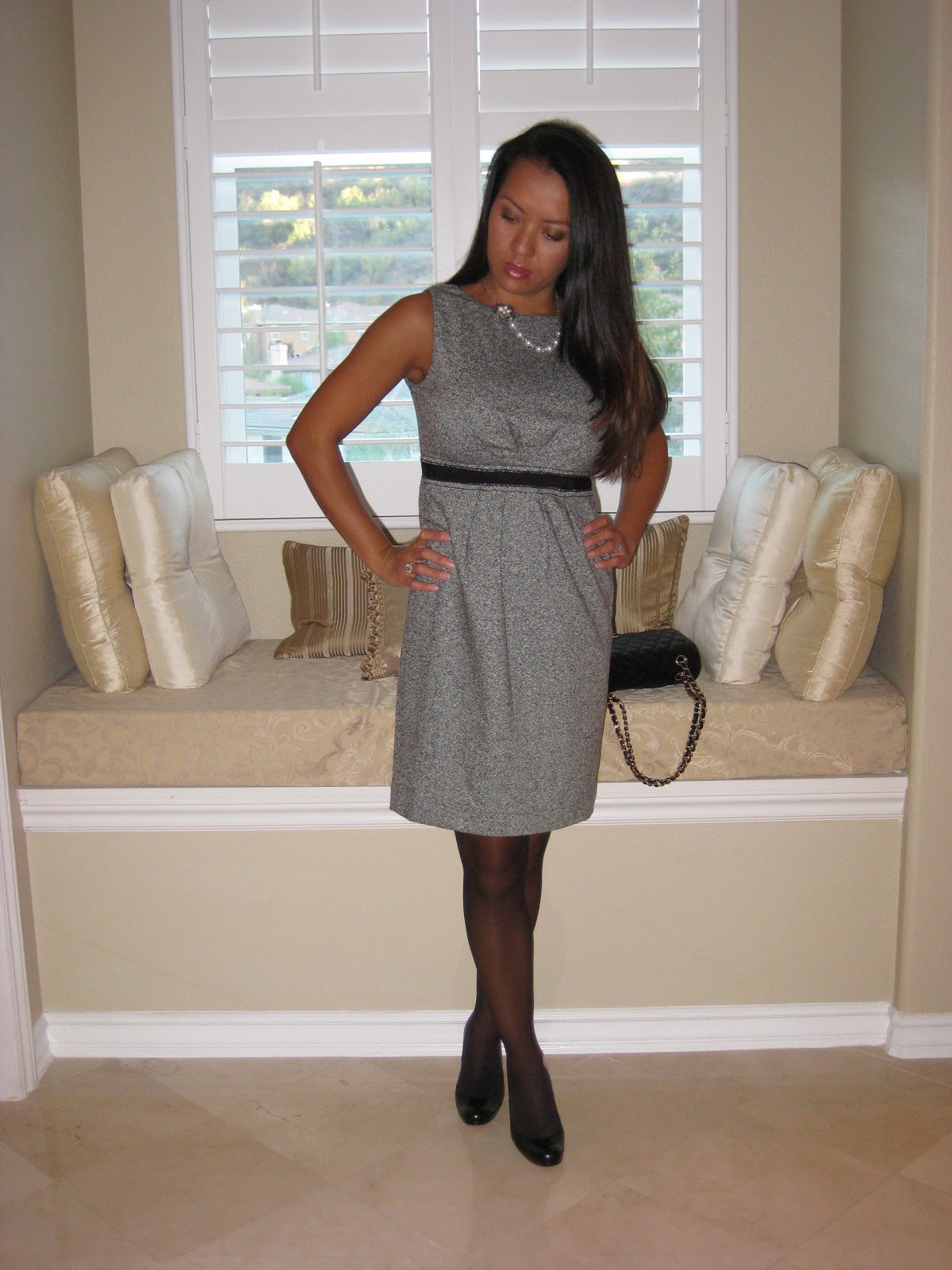 Dress: LOFT Pleated Tweed Sheath Dress – size 00p (sold HERE)