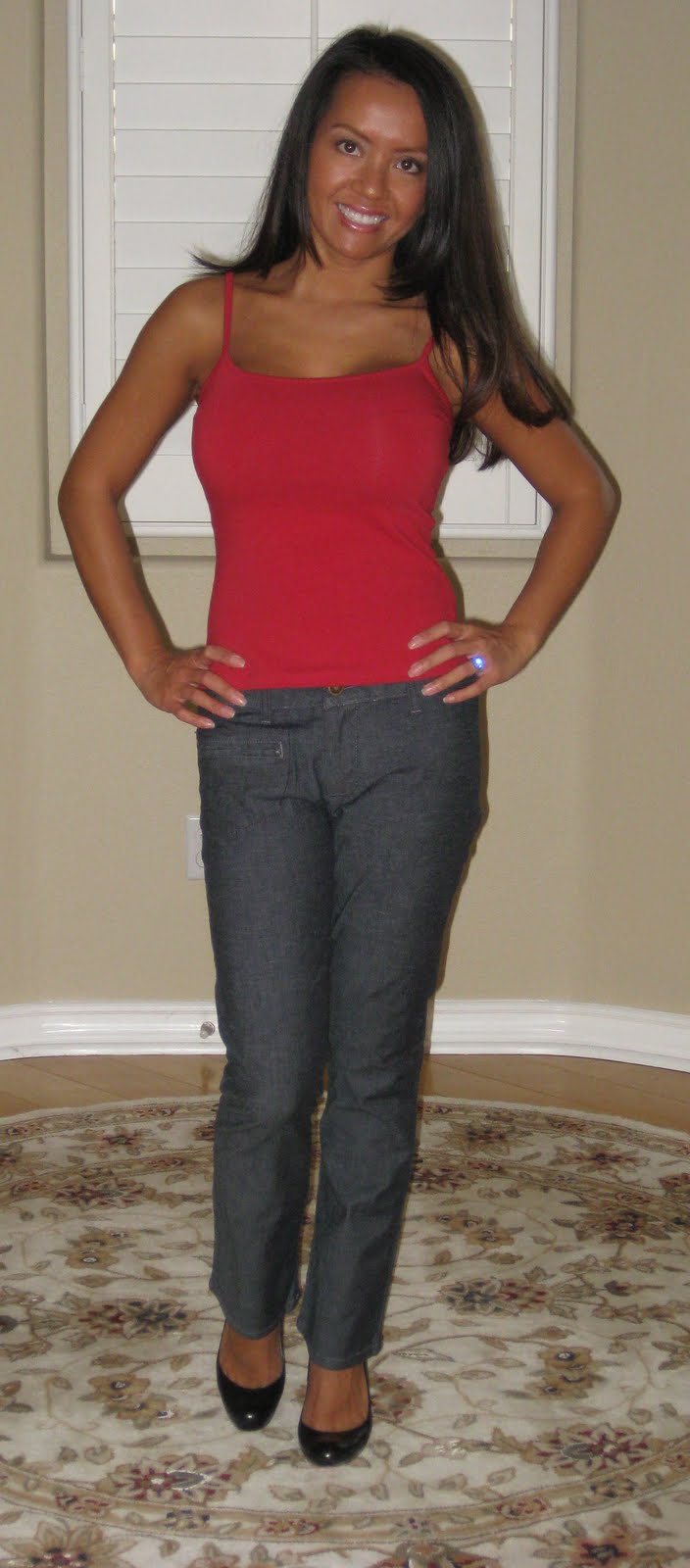@April Really? Red? I hardly have anything in red! I only wore this tank because it was the shortest top I could find..LOL