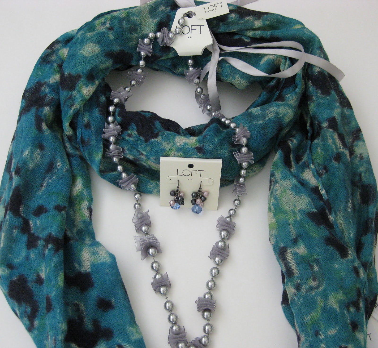 Since I have been a scarf addict this season, I bought a duplicate of one of my favorite scarfs. And I recently got this gorgeous pearl and ribbon necklace from LOFT outlet and these gem dangle earrings. I bought 2 sets because I loved them so much and wanted a lucky reader to have it as well 🙂 Can you tell I love LOFT?