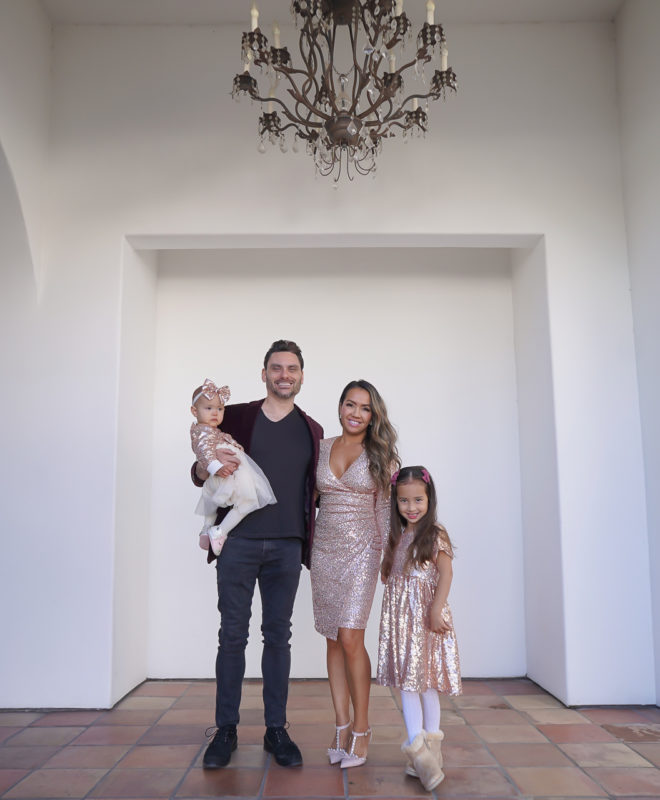Classy Holiday Outfit: Red Pleated Midi Skirt + Sequin Puff Sleeve Top