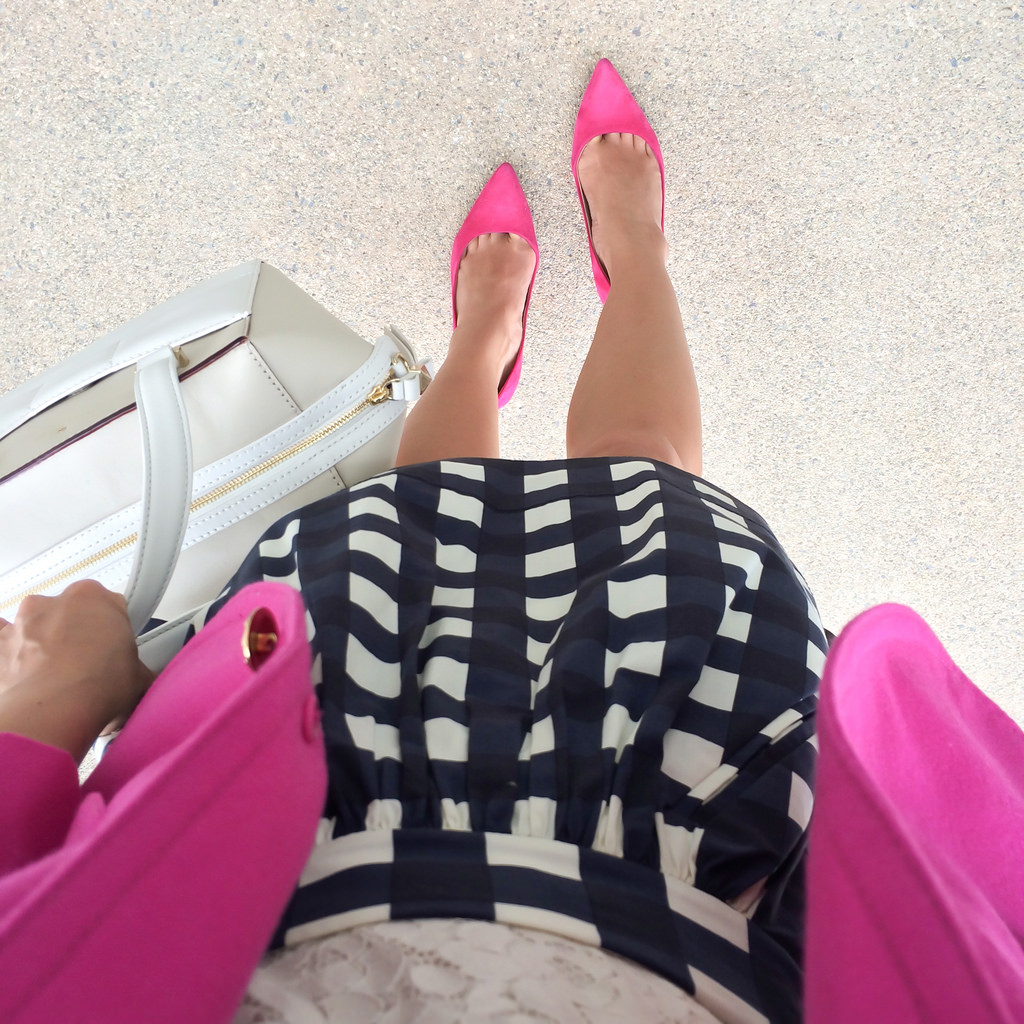 J.Crew Stripe Basket Weave Dress and Blush Accents